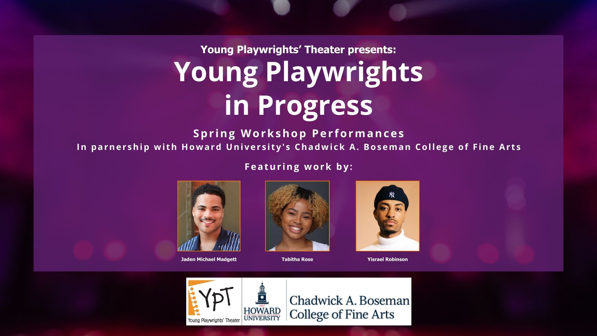 Young Playwrights in Progress (YPIP) is an opportunity for young, early-career playwrights aged 14 – 24 to engage in a script-development and workshop process of original, not-yet-produced one-act or full-length plays with Young Playwrights’ Theater (YPT). With the help of a reading committee of theater practitioners, YPT selects playwrights to engage in our YPIP program.
